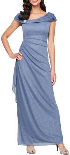 Alex Evenings Embellished L-Neck Gown In Dusty Blue At Nordstrom, Size 6