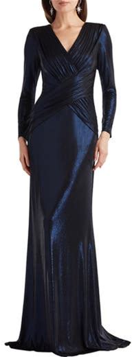 Tadashi Shoji Metallic Surplice V-Neck Long Sleeve Gown In Royal Navy At Nordstrom, Size Small