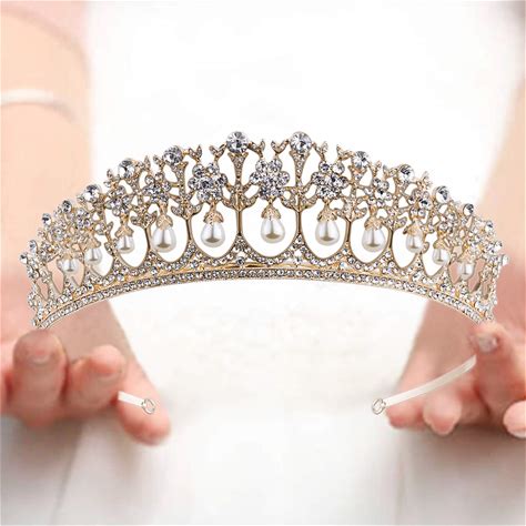 VIJIV Wedding Crystal Tiara Baroque Crown Bridal Headband Hair Decoration Bride Royal Crowns Elegant Bridal Headpiece Gold