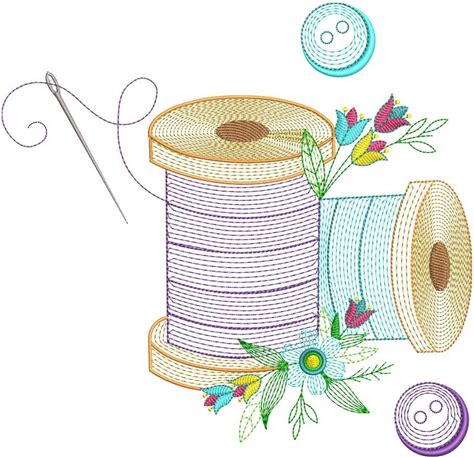 Sewing Thread - Machine Embroidery Design, Sewing Notions Embroidery Pattern, Sewing Needle & Thread Embroidery Design