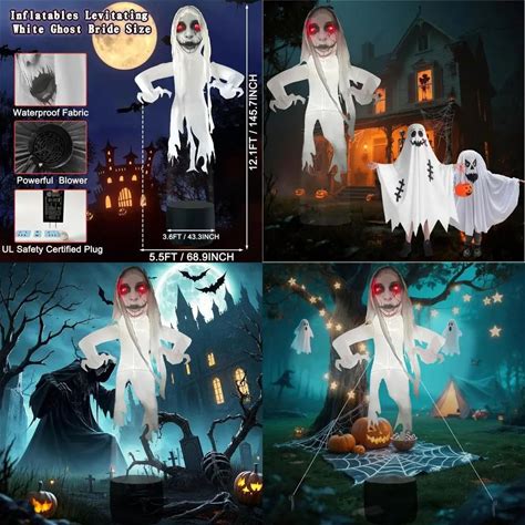 Animated Levitating White Ghost Bride Outdoor Halloween Inflatables With Red Eyes And LED Lights For