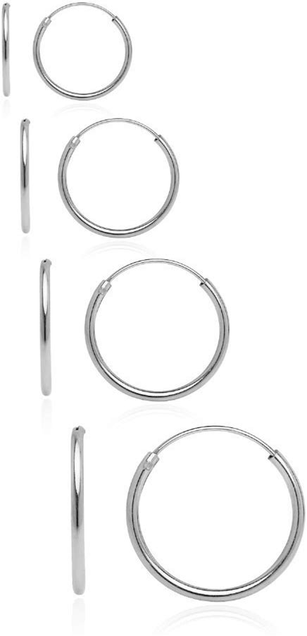 Hoops & Loops 925 Sterling Silver 10Mm, 12Mm, 14mm & 16mm Small Endless Infinity Sleeper Hoop Earrings For Women Men, Set Of 4 Pairs | Silver, Yelow &