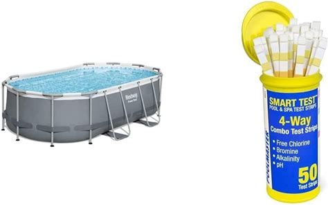 Bestway Power Steel Above Ground Pool Set (14' X 8'2" X 39.5") & Poolmaster 22211 Smart Test 4-Way Pool And Spa Test Strips - 50Ct