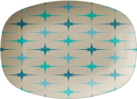 Mid Mod Atomic Starburst Platter, 50S Vintage Mid Century Modern Beige, Turquoise, Sky Blue Dinnerware, MCM Kitchen Gifts - 132082723