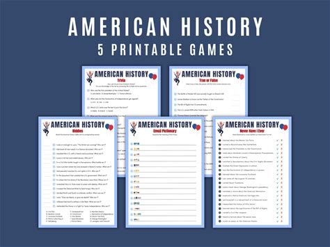 American History Games Bundle: 5 Printable Trivia Games (Digital Download)