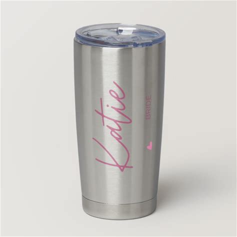 Canva Handwriting Modern Personal Name Bride Wedding Insulated Tumbler, Pink, Pack Of 1, 10.2" X 5.7"