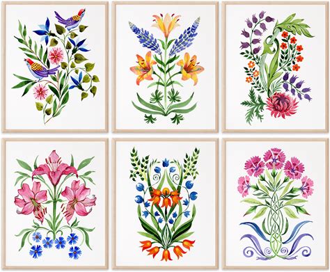 Colorful Floral Arrangements Art Prints (Set Of 6) | Unframed 8X10 Prints | Aesthetic Wall Decor | Botanical Prints For Wall Decor | Vibrant Wall Art