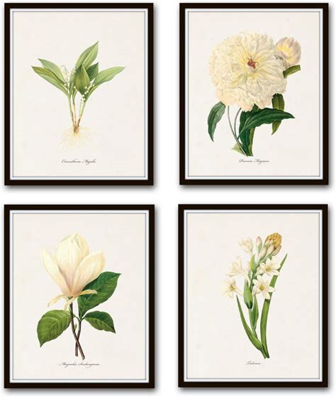 Redoute White Botanical Print Set No.1 - Botanical Prints, Wall Art Prints, Vintage Wall Art, Vintage Wall Decor, Vintage Art Prints, Botanical Wall