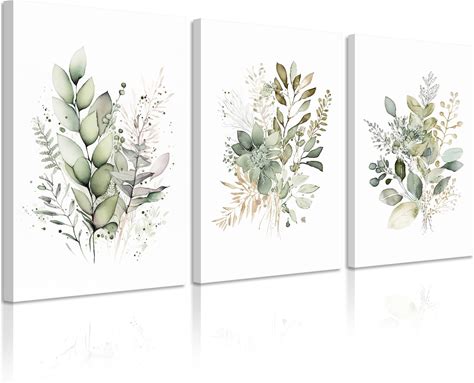 Set Of 3 Botanical Prints, Green And White Floral Posters, Vintage Inspired Wall Art For Living Room And Bedroom Decor