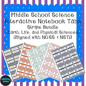 Middle School Science Interactive Notebook Tabs Striped Bundle Aligned W/ NGSS
