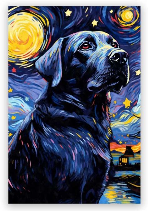 Jyzymuth Labrador Bestbuddy Pet Dog Poster Starry Night Van Gogh Inspired Animal Pet Family Oil Painting Art For Bedroom Living Room Canvas Print Wall