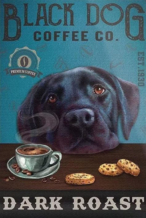 Coffee Canvas Wall Art Painting Black Labrador Dog Coffee Co. Dark Roast Canvas Painting Vintage Posters Wall Art Gifts For Living Room Bedroom Office