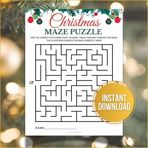 Christmas Maze Puzzle, Printable Maze Game, Labyrinth Game, Xmas Kids Classroom Activities, Brain Teasers, Christmas Party Classroom Games