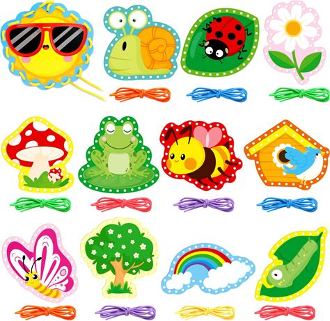 Dapaqami Springtime Lacing Cards 12 Packs Sewing Kits Rainbow Flower Butterfly Cardboard Sewing Cards Lacing Games For Developing Imagination School