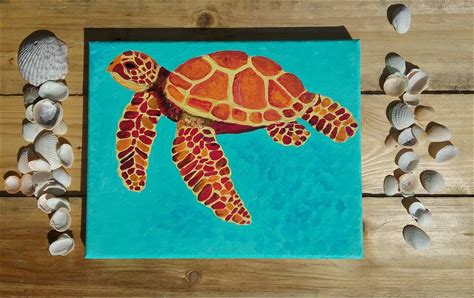 Original Painting | Sea Turtle Acrylic Painting | Canvas | Hand Painted | Kids Room Beach Decor | Nautical Coastal Painting | Wall Decor