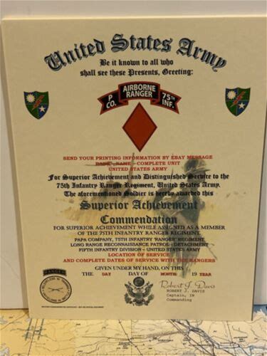 U.S. Army - 75th Ranger / O Co - Lrrp / Superior Commendation Award