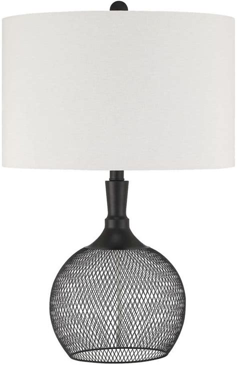 Table Lamp 24.5 in. Black Contemporary Standard Bulb Jar Table Lamp For Home W/ Mesh Base And Off-White Fabric Shade