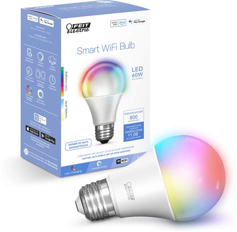Feit Electric Smart Wifi 60 -Watt EQ A19 RGB Screw Bases Dimmable Smart Commercial Light Bulb | OM60/RGBW/CA/AG