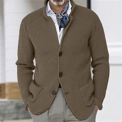 Men's Cardigan Sweater Crod Sweater Knit Sweater Ribbed Knit Regular Tops Buttons Plain Stand Collar Fashion Classic Vacation Daily Wear Clothing App