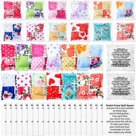 24 Set Mini Pocket Prayer Quilt With Cross Cards Christian Father's Day Prayer Quilt Gift Handmade Sew Panel Scripture Cloth For Church Baptisms