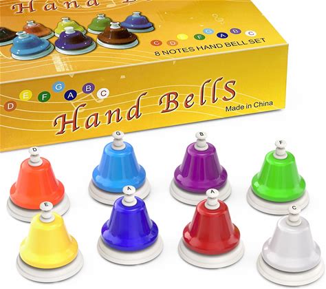 Heysland Handbells 8 Note Diatonic Metal Bell Colorful Desk Bells Hand Percussion Bells Kit For Kids Children Musical Teaching Family Party Chior