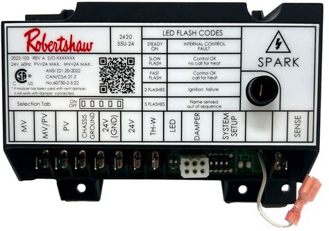 Robertshaw Ignition Module: Universal, 24V DC, 7 Sec Lock Out, 30 Sec Pre-Purge, 2 A Main Valve Output, 780U Model: 780U-DS20